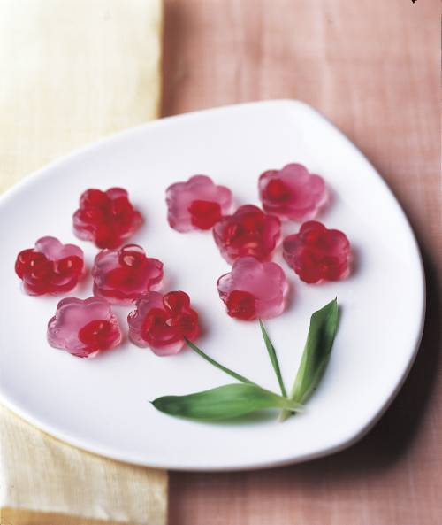 | 석류젤리 재료: 석류주스 2컵, 설탕 2큰술, 레몬즙 1큰술, 젤라틴 15g 만드는 법 ①석류에 젤라틴 설탕을 넣고 끓여준다. ②어느 정도 끓으면 설탕을 넣어서 끓이다가 레몬즙을 넣어서 끓여준다. ③모양틀에 넣어서 굳힌다. |