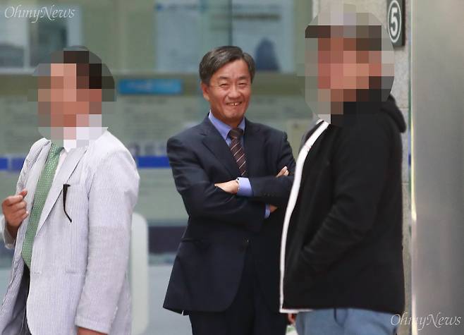[오마이포토] '국정원 댓글부대' 책임자, 팔짱에 여유있는 웃음