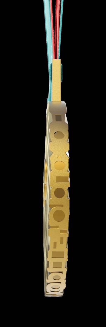평창 동계올림픽 메달은 우리 문화의 상징 중 하나인 한글에서 착안해 제작됐다. 메달 앞면에는 올림픽 전통에 따라 왼쪽 상단에 오륜이 배치됐고, 선수들의 노력과 인내를 표현한 역동적인 사선이 새겨졌다. 뒷면에는 대회 엠블럼과 세부 종목명이 담겼다. 특히 측면에는 ‘평창동계올림픽이공일팔’ 자음과 모음의 조합 중 자음의 ‘ㅍㅇㅊㅇㄷㅇㄱㅇㄹㄹㅁㅍㄱㅇㄱㅇㅇㄹㅍㄹ’이 입체감 있게 표현돼 특색을 더했다. 이 자음은 전면의 사선과 연결돼 조화를 이룬다.