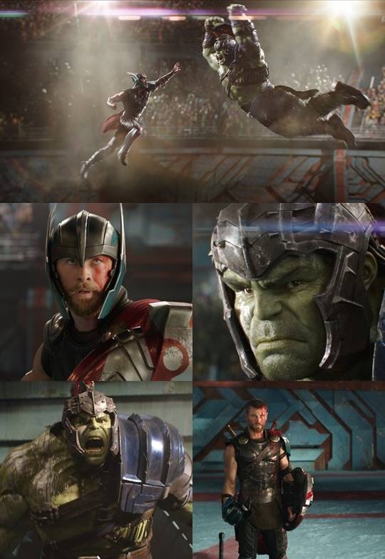 이날 공개된 스틸에는 토르와 헐크가 검투사 복장을 한 채 대결을 펼치는 모습이 담겨 있어 일촉즉발의 긴장감을 더한다.