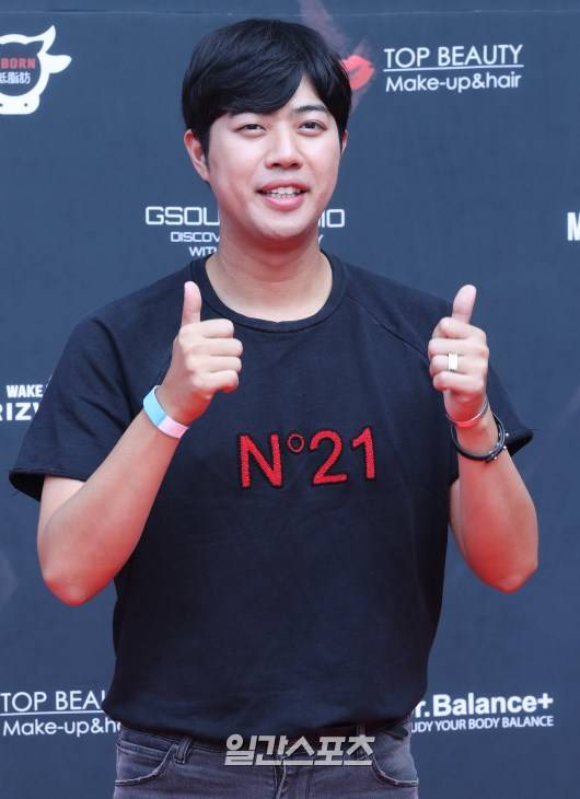 서태훈이 포토월에서 포즈를 취하고 있다.