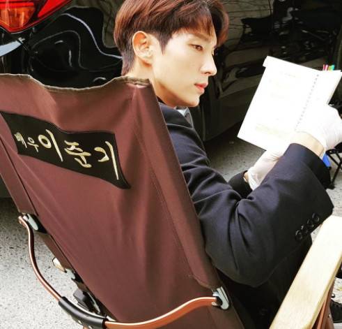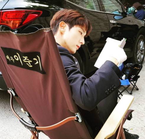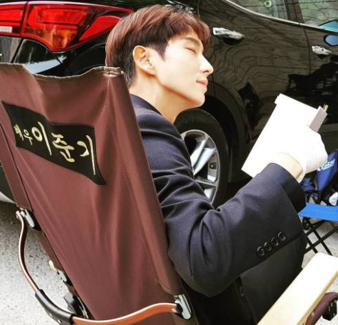 사진 속에는 '배우 이준기'라는 글자가 새겨진 의자에 앉아 휴식을 즐기는 이준기의 모습이 담겨 있다. 만화를 찢고 나온 듯한 훈훈한 외모가 눈길을 끈다.