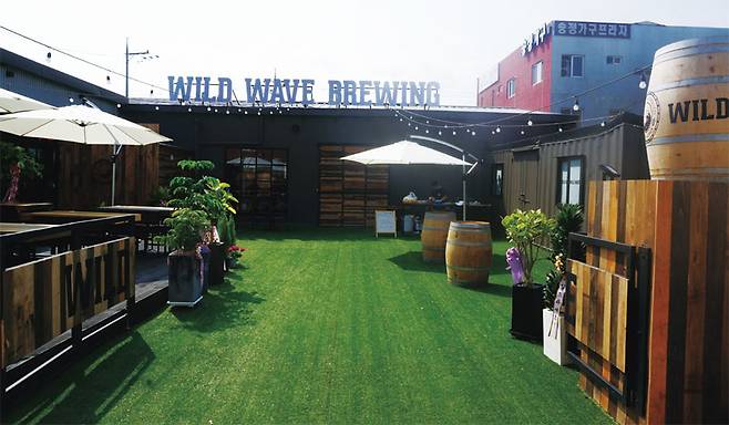 부산, 바다, 파도. 이 세 가지를 모두 담은 브루어리다. 야생(Wild)과 파도(Wave)를 이름으로 내세운 와일드웨이브 브루어리는 맥주 평가 사이트인 레이트비어*에서 ‘2016년 국내 최고의 맥주’로 평가 받은 곳으로 유명하다. 최고의 찬사의 주인공이자 와일드웨이브의 시그니처 맥주는 바로 ‘설레임(Surleim)(ABV 5.3%, IBU 20)’. 새콤한 레몬에이드에 향긋한 홉 향을 지닌 사워 비어로 와일드웨이브가 2015년 집시 브루어*로 활동 당시 한국 최초로 선보인 사워 비어다. 감정의 종류도 다양하다. 와일드웨이브 브루어리에서는 설레임, 설레임+, 작은 설레임, 설레임 와일드 네 가지 스타일 중 입맛에 맞게 고를 수 있다. 설렘 뒤엔 조금은 과감한 서핑이 어떨까? 지난 7월 송정 브루어리 오픈을 기념해 새롭게 선보인 서핑 하이(Surfing High)(ABV 4.7%, IBU 21)는 꿀과 타르트를 넣어 양조한 켈슈 맥주로, 상쾌하고 가벼워 누구에게나 부담이 없다. 부산, 바다, 파도 거기에 맥주까지 한데 모였다면 더 이상의 설명이 필요할까?