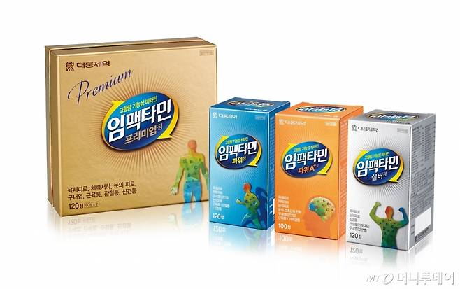 임팩타민프리미엄은 눈의 피로, 어깨 결림, 구내염 등의 증상 개선에 도움을 준다.임팩타민파워는 체력관리, 면역력 증가를 돕는다.임팩타민파워A+는 체력과 두뇌건강을 한 번에 챙기고임팩타민실버는 영양소가 고루 담겼다.
