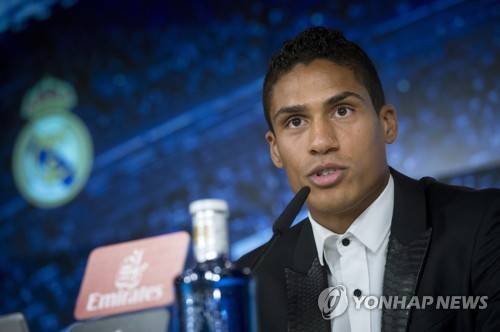 epa06232283 French defender Raphael Varane of Real Madrid attends a press conference held at Santiago Bernabeu stadium in Madrid, Spain, 28 September 2017. Varane has renewed with the Spanish club until 30 June 2022. EPA/Luca Piergiovanni