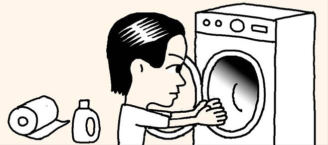드럼세탁기 고무패킹에는 곰팡이가 생기기 쉽다. 락스에 적신 키친타월을 고무패킹 사이에 끼워뒀다가 반나절 정도 지나 닦아내면 깨끗해진다.