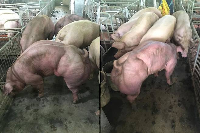 최근 페이스북 등 사회관계망서비스(SNS)에서 많은 네티즌의 공분을 사고 있는 이 영상에는 일반 돼지보다 근육이 두 배 가량 많아 보이는 돼지들의 모습이 담겨있다.