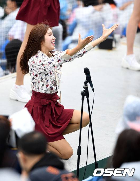 [OSEN=대전, 지형준 기자] 1일 오후 대전 한화생명이글스파크에서 열린 '2017 타이어뱅크 KBO리그' 한화 이글스와 두산 베어스의 경기, 한화 치어리더 김연정이 추석을 맞아 한복을 입고 공연을 선보이고 있다. /jpnews@osen.co.kr