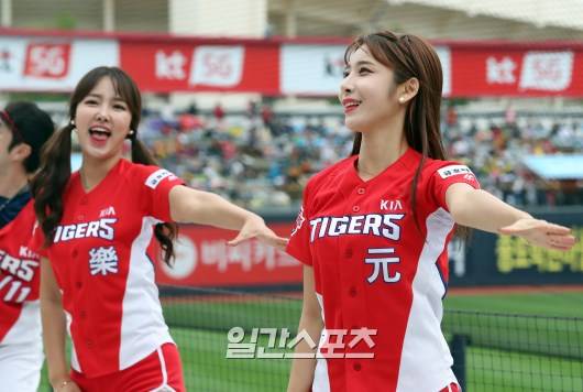 2017 KBO리그 프로야구 kt위즈와 KIA타이거즈의 시즌 마지막 경기가 3일 오후 수원kt위즈파크에서 열렸다. 시즌 우승을 결정짓는 이날 경기에서 KIA치어리더들이 환한 미소와 멋진 율동으로 응원을 펼치고 있다.