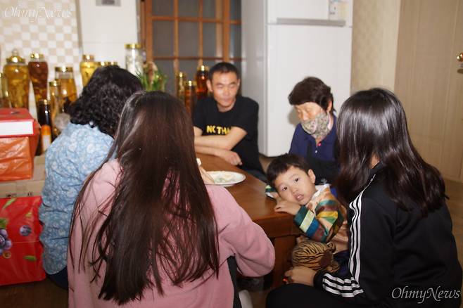 | ▲ 추석을 맞아 고향을 찾은 임분순 소성리 부녀회장 집 식구들. 둘러앉아 이야기를 나누고 있지만 사드 이야기가 나오자 우울하기만 하다고 말한다. |
