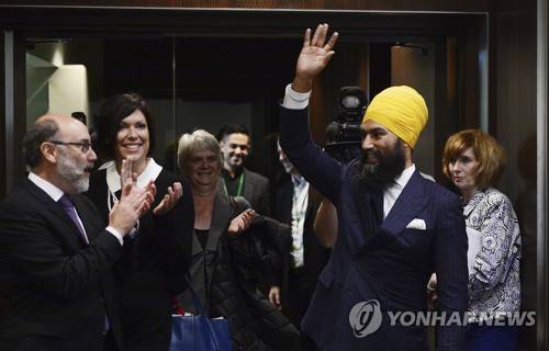 NDP Leader Jagmeet Singh arrives to his first caucus meeting since being elected to the leadership of the New Democrats, in Ottawa on Wednesday, Oct. 4, 2017. (Sean Kilpatrick/The Canadian Press via AP)