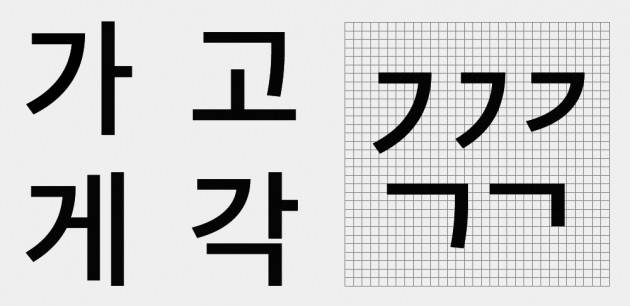 한글 폰트를 만드는 일은 녹록치 않다. 한글은 조합형 글자다. 영어와 달리 초성, 중성, 종성을 가지고 있다. 예를 들어 ‘가’, ‘고’, ‘각’에 쓰이는 자음은 모두 ‘ㄱ’이지만, 형태적으로는 모두 다른 'ㄱ'이다. 한글은 자음과 모음이 조합에 따라 디자인적으로 형태를 달리 한다.