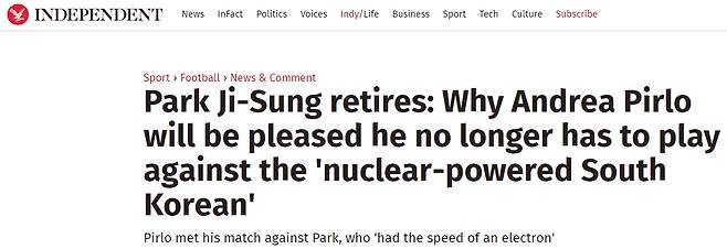 그런 피를로가 은퇴 계획을 발표하면서(올해 말 경) 유럽은 물론 국내 언론에서도 그의 커리어를 다시 돌아보는 기사들이 이어지고 있다. 물론, 그 중에는 앞으로도 두고두고 회자될 박지성과의 인연도 포함되어 있다.