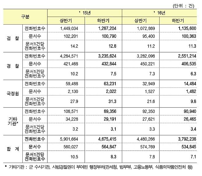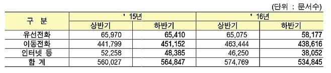 | ▲ 2016년 하반기 통신 자료 조회 현황. 미래창조과학부 제공 |