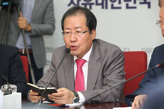 | ▲ 9일 오전 서울 여의도 자유한국당 당사 회의실에서 홍준표 당 대표 주재 최고위원회의가 열렸다. 자유한국당 제공. |