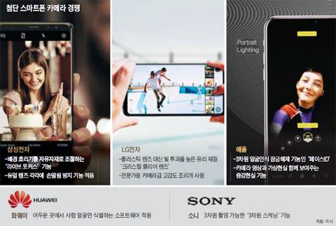 스마트폰 업계에 치열한 '눈(目) 전쟁'이 벌어지고 있다. 삼성전자·LG전자·애플·소니·화웨이 등 글로벌 스마트폰 업체들은 올 하반기 프리미엄 스마트폰 신제품을 내놓으면서 각자 특화된 '카메라 기능'을 핵심으로 내세웠다. 스마트폰의 화면 크기와 무게, 구동 속도 경쟁이 한계에 이르자 첨단 카메라와 이를 이용한 증강현실(AR), 보안 기능이 새로운 경쟁 분야로 급부상하고 있는 것. 김익재 한국과학기술연구원(KIST) 영상미디어연구단장은 "스마트폰 카메라가 일반 디지털 카메라를 대체하는 수준까지 발전했다"면서 "스마트폰 카메라와 영상을 처리하는 소프트웨어의 발달은 인공지능 번역이나 이미지 인식, 홀로그램 등 새로운 서비스를 구현할 수 있는 원동력이 되고 있다"고 말했다.