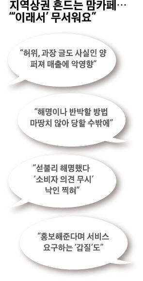 지난해 경기 수원시에 작은 식당을 연 A(50)씨는 주부들이 육아나 지역 정보를 공유하는 온라인 '맘카페' 때문에 요즘 밤잠을 설친다.