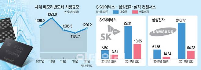 메모리 반도체의 슈퍼사이클이 언제쯤 끝날 것인가에 대한 대답은 누구도 명확하게 내놓지 못하는 문제다. 제조사는 물론 증권가, 시장조사업체도 특정 시기를 놓고 예측하는데 신중에 신중을 기한다. 최근 IHS마킷이 내년 메모리 반도체 시장 규모가 1321억6500만달러(약 151조원)로 정점을 찍은 이후 2019년에 줄어들 것이란 전망을 내놓기는 했지만, 신기술의 등장과 새로운 기기의 개발 등 변수가 많아 여전히 오리무중이라고 보는 편이 더 타당하다는게 업계 관계자들의 시각이다. 특히 자동차에 컴퓨팅 기능이 접목되는 ‘스마트카’의 확산과 AI의 확대·발전 등 수요를 계속 견인할 요소가 충분하다는 점에서 역시 호황의 끝이 언제라고 예단하기에는 어려움이 있다.