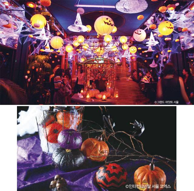‘이번 할로윈 데이에는 뭘 하지?’ 하는 고민에 대한 럭셔리 솔루션. 올해도 어김없이 찾아온 할로윈 데이를 위한 파티를 준비하느라 호텔들이 분주하다. 서울 삼성동에 위치한 인터컨티넨탈 서울 코엑스의 로비 라운지는 10월27일 저녁 6시부터 새벽 1시까지 할로윈 콘셉트로 꾸며진다. 호박 램프인 ‘잭 오 랜턴(Jack-o’Lantern)’과 각종 할로윈 소품과 함께 할로윈을 주제로 한 메뉴, 10종 이상의 프리미엄 와인과 3가지 종류의 드래프트 비어 등을 무제한으로 즐길 수 있다.