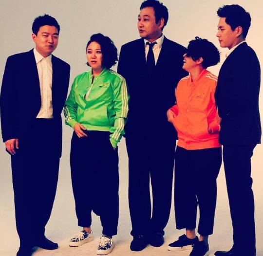 사진 속에는 최근 종영한 '영수증'에서 환상의 호흡을 과시한 김생민, 송은이, 김숙 뿐 아니라 절친 김수용, 이기찬이 수트를 입고 사진 촬영을 준비 중인 모습이 담겨있다.
