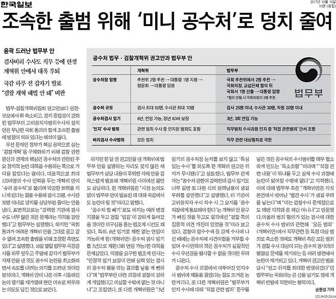 국감 하루 전 나온 ‘미니 공수처’ 법무부 안