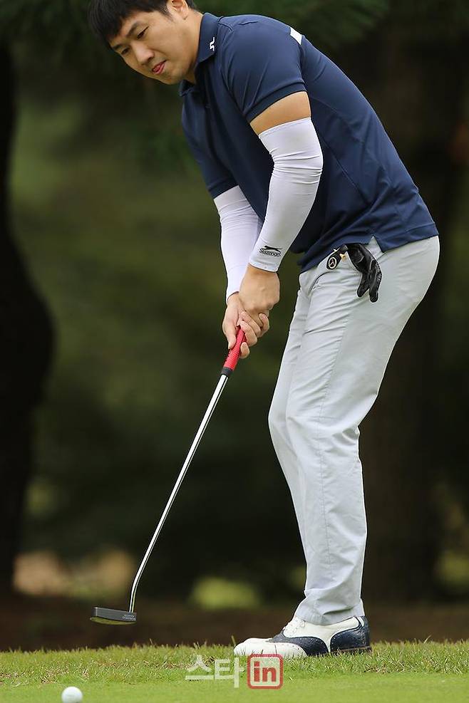 최경태가 14번 홀에서 퍼트를 하고 있다.
