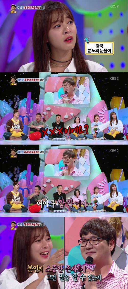 16일 밤 방송된 KBS 2TV '안녕하세요'에서 정찬우는 아내와 아기 앞에서 욕을 달고 사는 남편의 사연을 소개했다.
