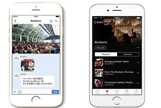 (사진) 버버리는 라인, 공식 페이스북 등 다양한 플랫폼에서 패션쇼 라이브스트리밍을 진행하고 있으며(왼), 글로벌 브랜드로서 처음으로 애플뮤직에 브랜드 전용 채널을 개설했다.