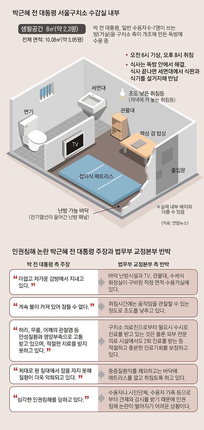 - 서울구치소 "박근혜 '인권침해' 주장, 사실 아니다"..매트리스 쓰고 온돌방