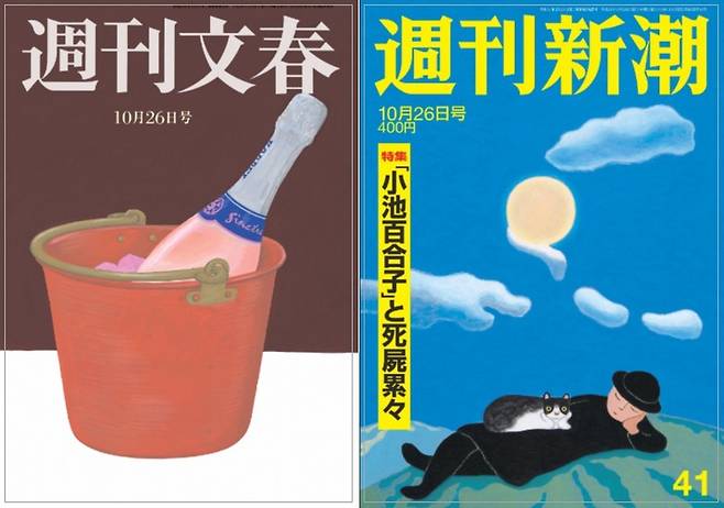 일본을 대표하는 시사 주간지 '슈칸 분슌'(주간문춘/왼쪽)과 '슈칸 신조'(주간신조/오른쪽)입니다. 일본잡지협회에 따르면 올 2분기(4-6월) 남성 종합주간지 부분 1위는 슈칸 분슌으로 발행부수는 65만 9천 부입니다. 슈칸 겐다이(주간현대)가 2위로 47만 4천여 부, 슈칸 신조는 3위로 43만 7천여 부를 기록했습니다. 1위인 분슌을 2,3위인 겐다이와 신조가 쫓고 있는 상황입니다. 특히 분슌과 신조는 50대 이상 주독자 층이 겹치고 있어 경쟁 심리가 대단한 것으로 알려지고 있습니다. 두 잡지의 치열한 경쟁은 수많은 이야깃거리를 낳기도 합니다.