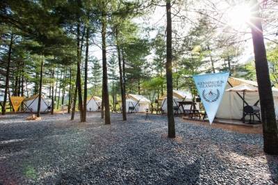 ▲ 켄싱턴플로라 호텔은 11월 12일(일)까지 프랑스식 정원과 함께 아늑한 호수를 산책하며 가을을 만끽할 수 있는 '어텀 글램핑 패키지'를 선보인다.
