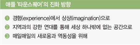 결국 타운스퀘어는 매일매일 살아 있고 지역사회와 강한 연대를 갖고 제품이 아닌 개인의 삶에 집중하는 공간이다. 스토어를 버린 애플은 타운스퀘어를 통해 온라인이 판매의 중심이 되는 이 시대에 더욱 빛을 발할 것으로 보인다.