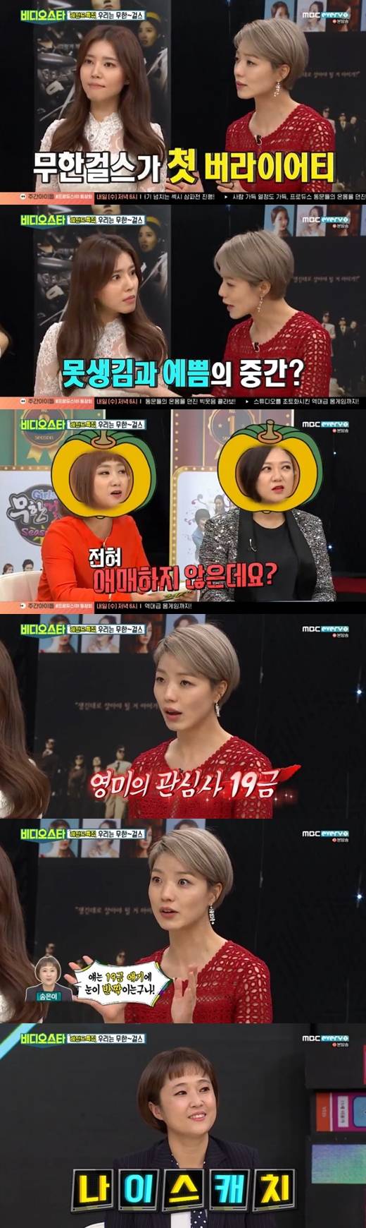 24일 방송된 케이블채널 MBC에브리원 '비디오스타'는 개국 10주년 '레전드 특집'으로 꾸며져 개국공신인 '무한걸스' 멤버 송은이, 신봉선, 황보, 백보람, 정시아, 안영미 등이 출연했다.