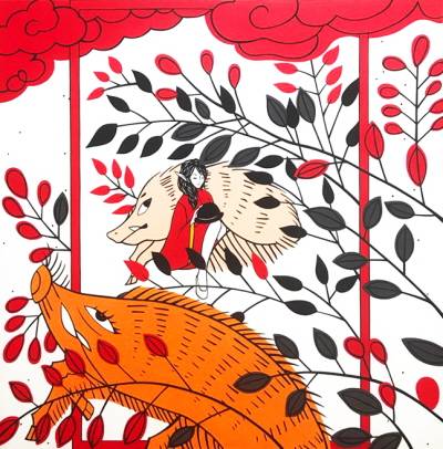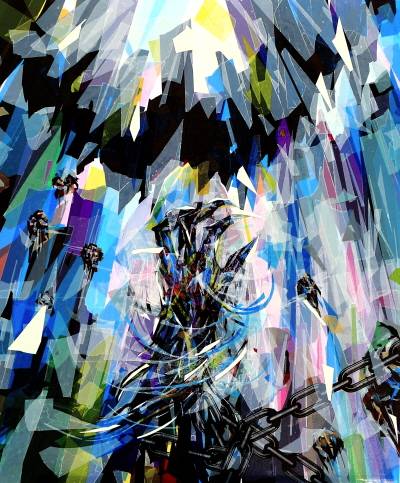 박초월 작가는 '커넥트'를 주제로 '생명의 나무'와 뮤의 캐릭터 '흑기사', '흑마법사'를 결합해 각자의 경계를 허물고 또 다른 신세계를 재탄생 시켰다. 콜라보가 게임산업의 문화적 가치를 알리는데 필요한 신선한 시도라는 게 박초월 작가의 설명이다.