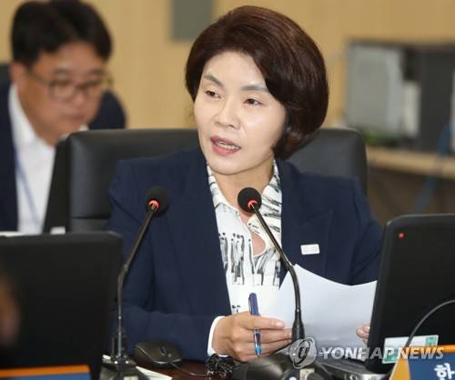 (울산=연합뉴스) 김용태 기자 = 26일 오전 울산시 중구 한국산업안전보건공단 본사에서 열린 국회 환경노동위원회의 근로복지공단, 한국산업인력공단, 한국산업안전보건공단, 한국고용정보원, 학교법인한국폴리텍, 한국기술교육대학교에 대한 국정감사에서 더불어민주당 한정애 의원이 질의하고 있다. 2017.10.26