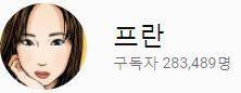 ━ 프란, 구독자 수는 유튜브 10월 기준 28만2244명