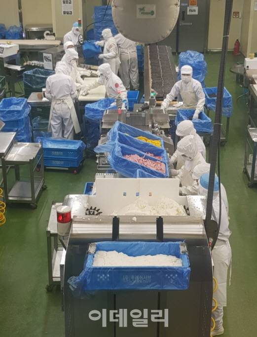 도시락 하나를 만들기 위한 인력은 얼마나 필요할까. 도시락 용기에 밥만 얹고 반찬 가짓수에 따라 한 명씩 작업자가 붙어 수작업으로 반찬을 담는다. 도시락 하나에 대략 20여명의 손을 거친다. 각각의 반찬은 삶고 튀기고 굽고 볶고 데치고 가열하는 과정을 거쳐 완성된다. 전주비빔밥을 만들 때 밥에는 ‘파프리카액’이 들어간다. 빨간색을 돋보이게 하기 위해서다.