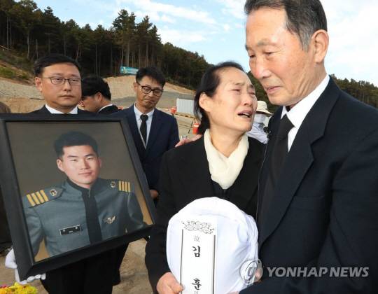 김 중위 모친은 아들의 영정을 바라보며 “내 아들 눈에 눈물이 고여 있다. 꼭 내 꿈에 다시 한 번 오너라”며 오열해 주위를 숙연케 했다.
