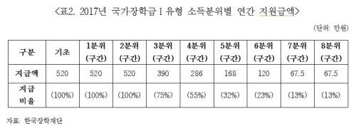 한국장학재단의 국가장학금 소득분위 산정 방식이 들쑥날쑥해 제도보완이 시급하다는 분석 결과가 나왔다. 같은 부모를 둔 형제자매인데도 소득분위 산정 결과가 작게는 1·2구간, 많게는 9구간까지 벌어졌다. 가구소득에 별다른 변화가 없었는데도 1학기엔 장학금을 받았다가 2학기 때는 못받은 경우도 허다했다.