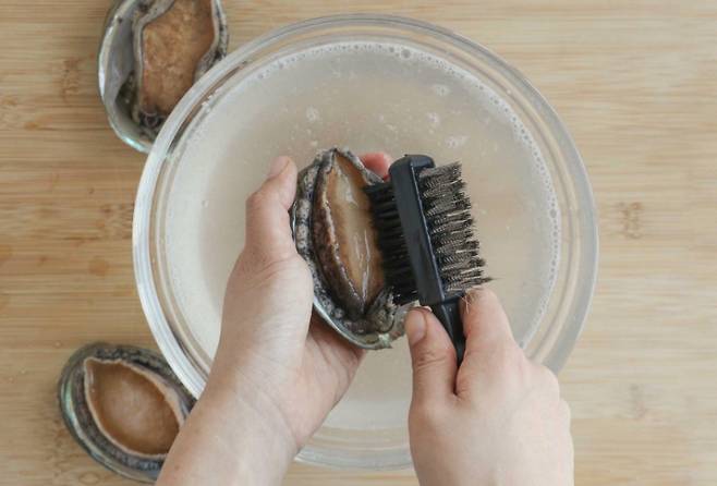 1. 전복은 솔을 이용해 이물질을 깨끗이 닦는다.