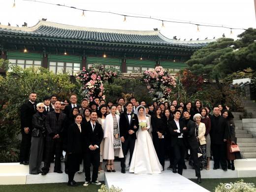 이들이 한자리에 모인 사진이 공개됐다. 이날 결혼식에 참석한 중국 스상그룹 쑤망 총재는 신랑 신부 지인, 친구들과 찍은 단체 사진을 자신의 SNS에 공개해 눈길을 끌었다.