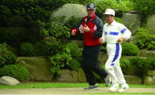 | 1993년 7월 청와대 경내에서 빌 클린턴 미국 대통령(왼쪽)과 나란히 조깅을 하고 있는 김영삼 전 대통령. |