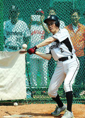 | 문재인 대통령이 민주통합당 고문 시절이던 2012년 7월8일 경기 소재 고양 원더스의 구장을 찾아 배트를 휘두르고 있다. |
