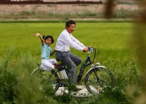 | 2008년 8월 노무현 전 대통령이 자전거에 손녀를 태운 채 고향인 경남 김해의 봉하마을을 돌고 있다. |