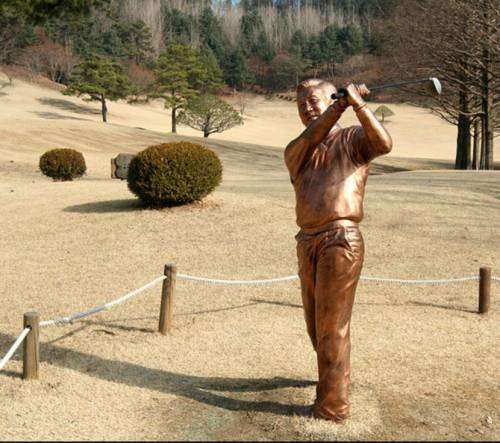 | 9사단장 취임 후 골프를 접했던 노태우 전 대통령은 이후 그 매력에 푹 빠졌다. 사진은 역대 대통령의 취미를 주제로 설치했던 동상으로 노태우 전 대통령의 골프 샷을 형상화했다고 한다. |
