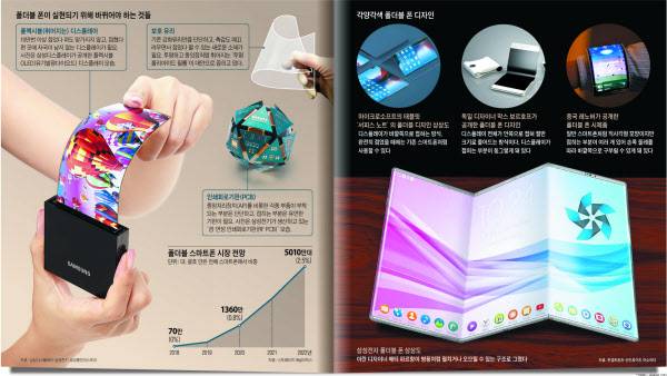 스마트폰의 새로운 하드웨어 혁신으로 접을 수 있는 '폴더블(foldable)'폰 개발 경쟁이 불붙고 있다. 폴더블 폰은 디스플레이를 포함한 스마트폰 자체를 접었다 폈다 할 수 있는 폰이다. 디스플레이 자체가 접혀야 한다는 점에서 스마트폰 이전에 많이 썼던 폴더폰과 기술적으로 차원이 다르다. 삼성전자는 내년 중으로 폴더블 폰을 출시하겠다는 계획을 내놨고 LG전자와 미국 애플, 중국 레노버, 일본 소니 등 주요 스마트폰 제조사들도 폴더블 폰을 준비하고 있다. 미국 시장조사업체 스트래티지 애널리틱스는 폴더블 폰이 내년에 처음 상용화돼 2022년에는 시장 규모가 5000만대를 넘길 것이라고 전망했다.