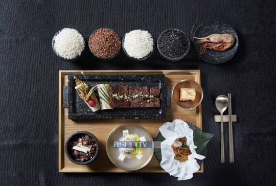 (모시조개국 + 김치, 한우: 적북 고창 한우, 한국 토종쌀 4종: 북흑조, 자광도, 흑갱, 충북 흑미)