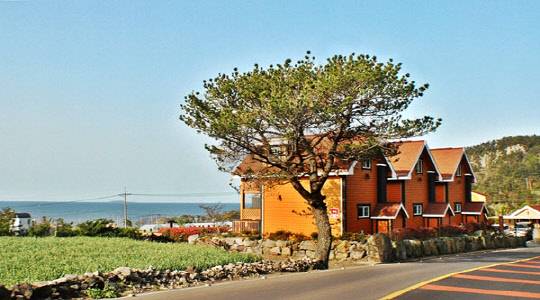 '하바다통나무집'은 중문관광단지 10분 거리 올레 8, 9코스의 시작점에 있어 객실에서 아름다운 제주도 푸른 바다를 볼 수 있는 장점이 있다.