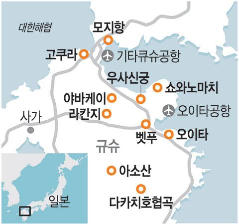 규슈 여행의 중심은 대도시 후쿠오카(福岡)지만, 후쿠오카의 여행지는 워낙 많이 알려졌다. 게다가 대도시 여행은 조언할 게 별로 없다. 도시는 어디나 비슷하다. 대중교통 노선이 촘촘하고 여행 정보도 찾기 쉽다. 반면 규슈 동부 쪽은 비교적 관광객의 발길이 덜 닿았고, 항공편 요금도 쌌다. 일본 규슈의 동부가 여행 목적지가 된 연유는 이랬다.