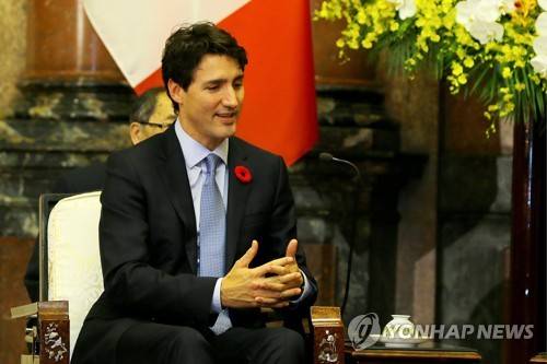epa06315824 Canadian Prime Minister Justin Trudeau meets with Vietnamese President Tran Dai Quang (not pictured) at the Presidential Palace in Hanoi, Vietnam, 08 November 2017. Trudeau is on an official visit to Vietnam and will be in Da Nang to attend the Asia Pacific Economic Cooperation (APEC) summit. EPA/STRINGER